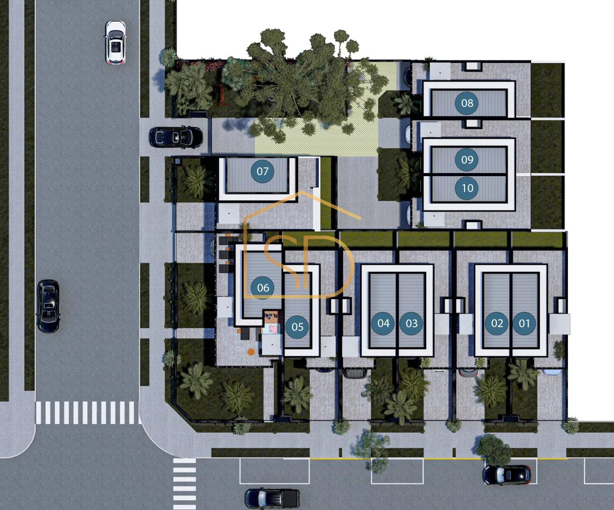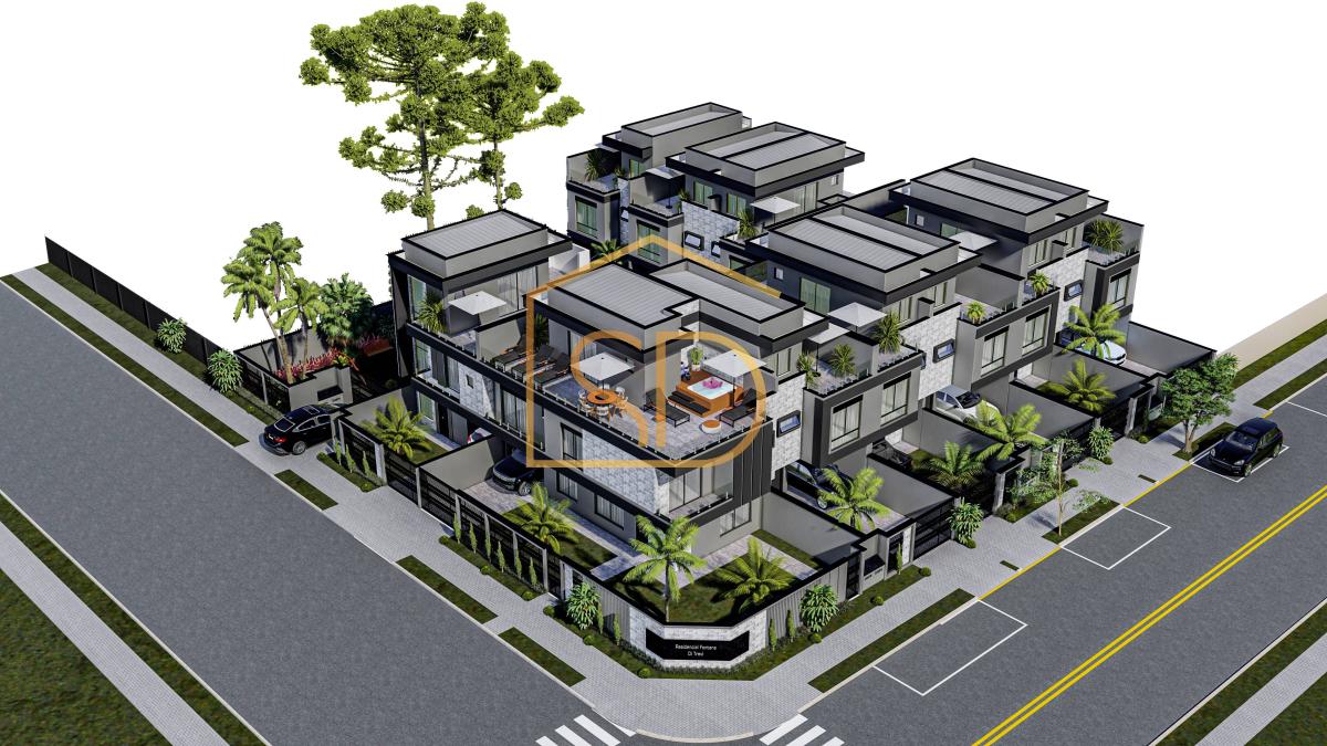 3 unidades internas, com 136 metros cada, com um espaço exclusivo do condomínio, contendo jardim e duas araucárias.